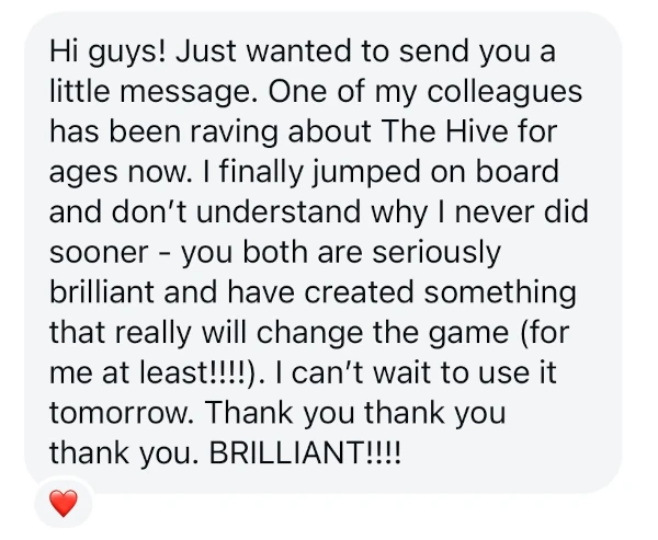 That's why my husband Jez (tech wizard and proud son of a teacher!) and I built The Hive.